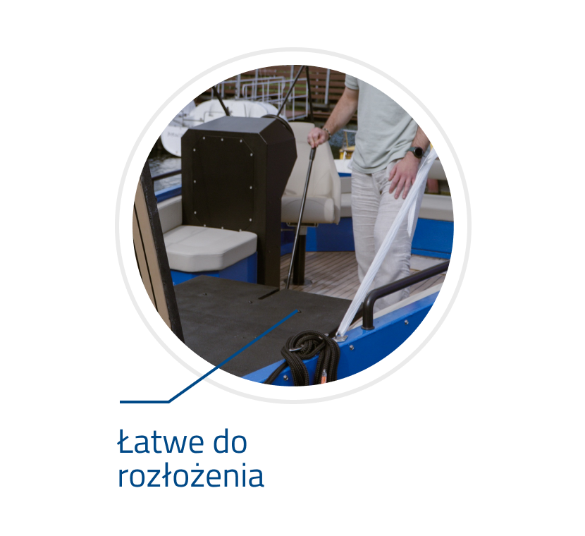 bateria, napęd, składane bimini, dedykowany pokrowiec transportowy